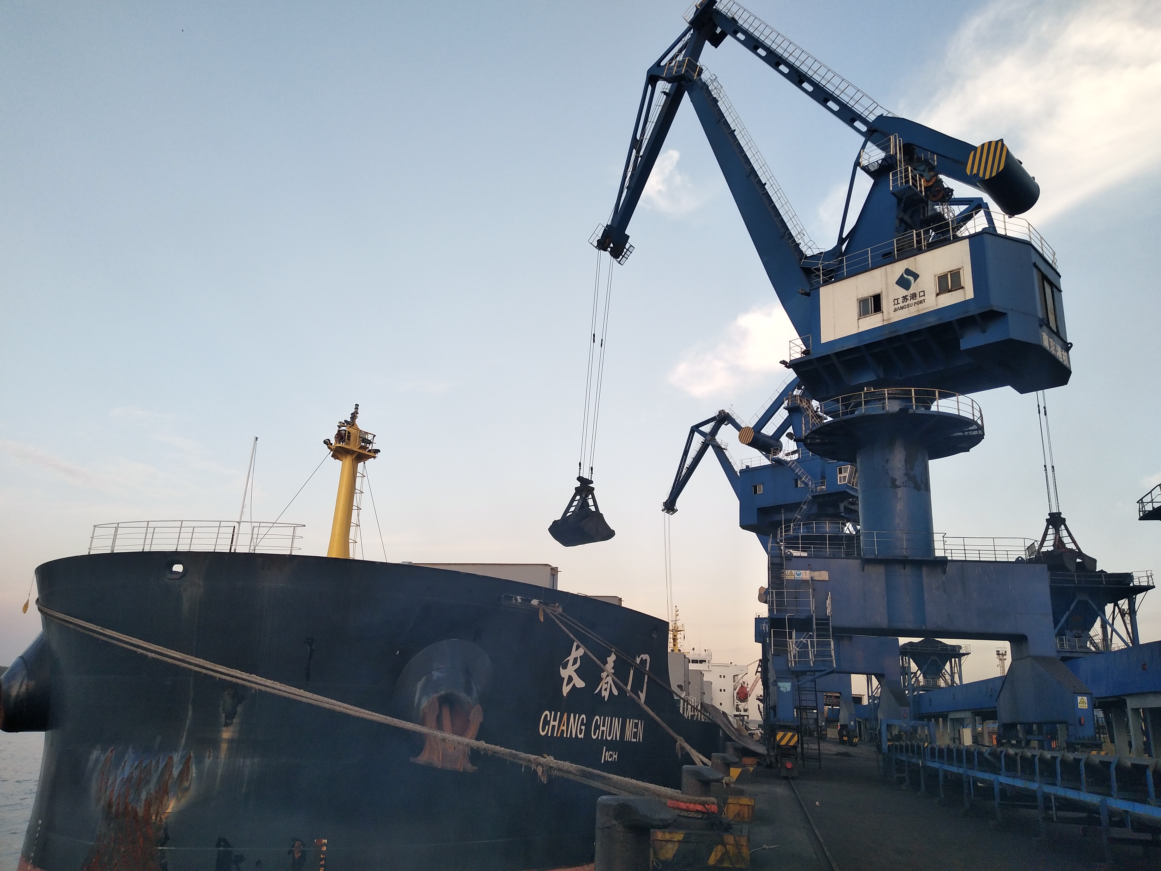 20211115日下午,随着船舶轮机操作人员将岸电开关合闸,5万吨级散货船——“长春门”轮在南京新生圩港成功完成低压岸电连船送电作业,岸电同步并网一次成功。