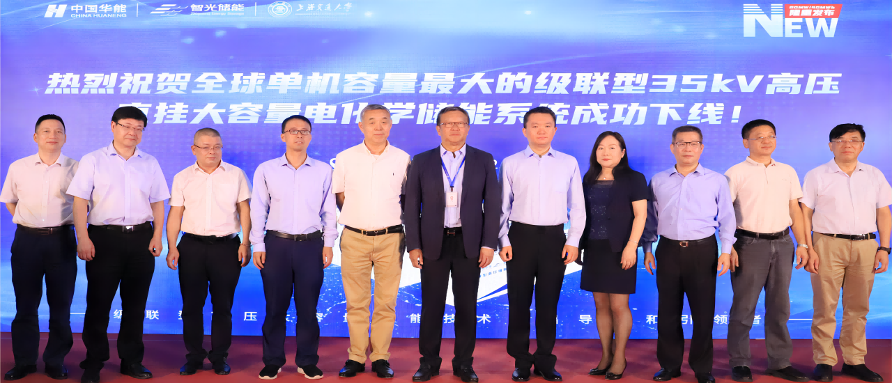 2022年7月,全球单机容量最大的级联型35kV高压直挂大容量储能系统新品正式下线(20MW/40MWh)